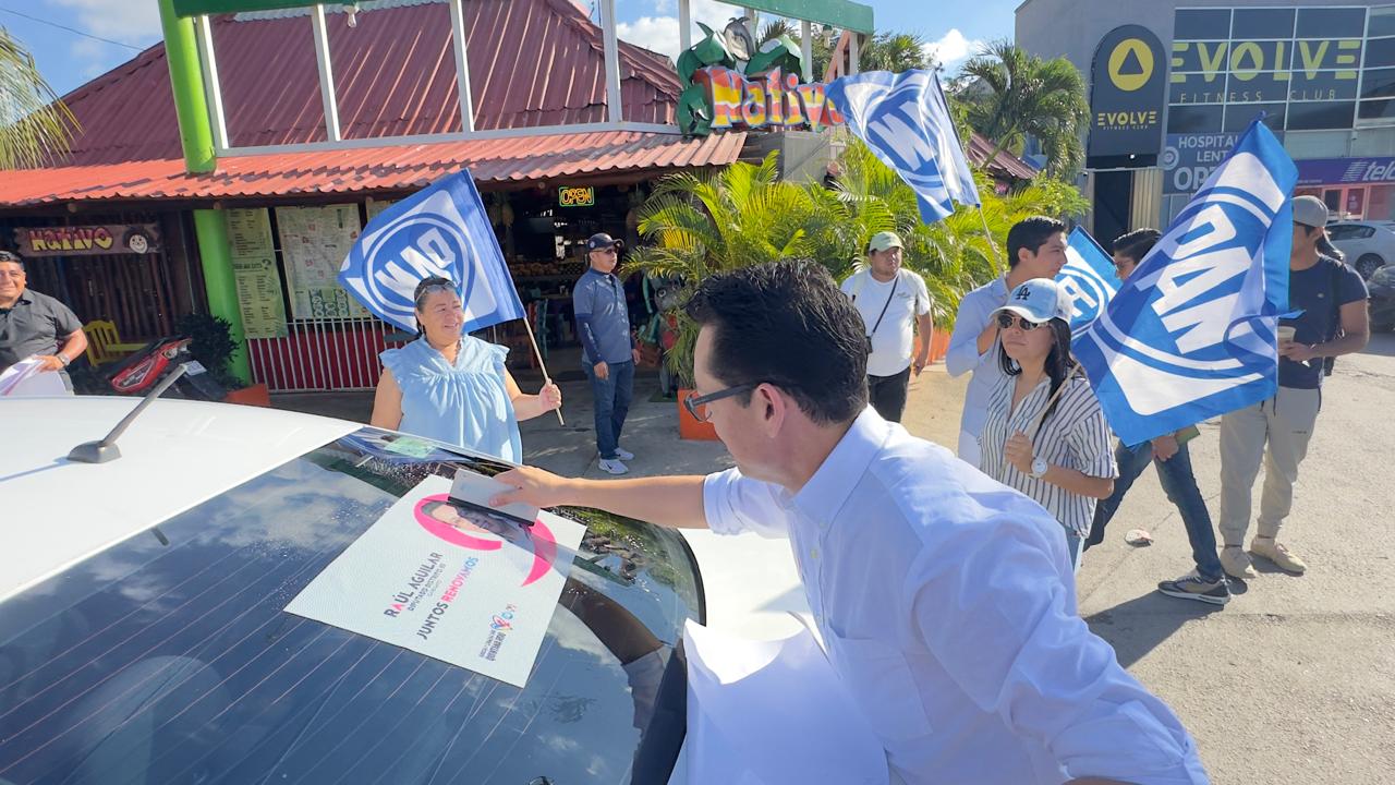 El candidato Aguilar Acosta estuvo acompañado de su suplente, Teresita Flota Alcocer, además de militantes y simpatizantes del PAN y seguidores del candidato que lo apoyan para llegar al Congreso de Quintana Roo.