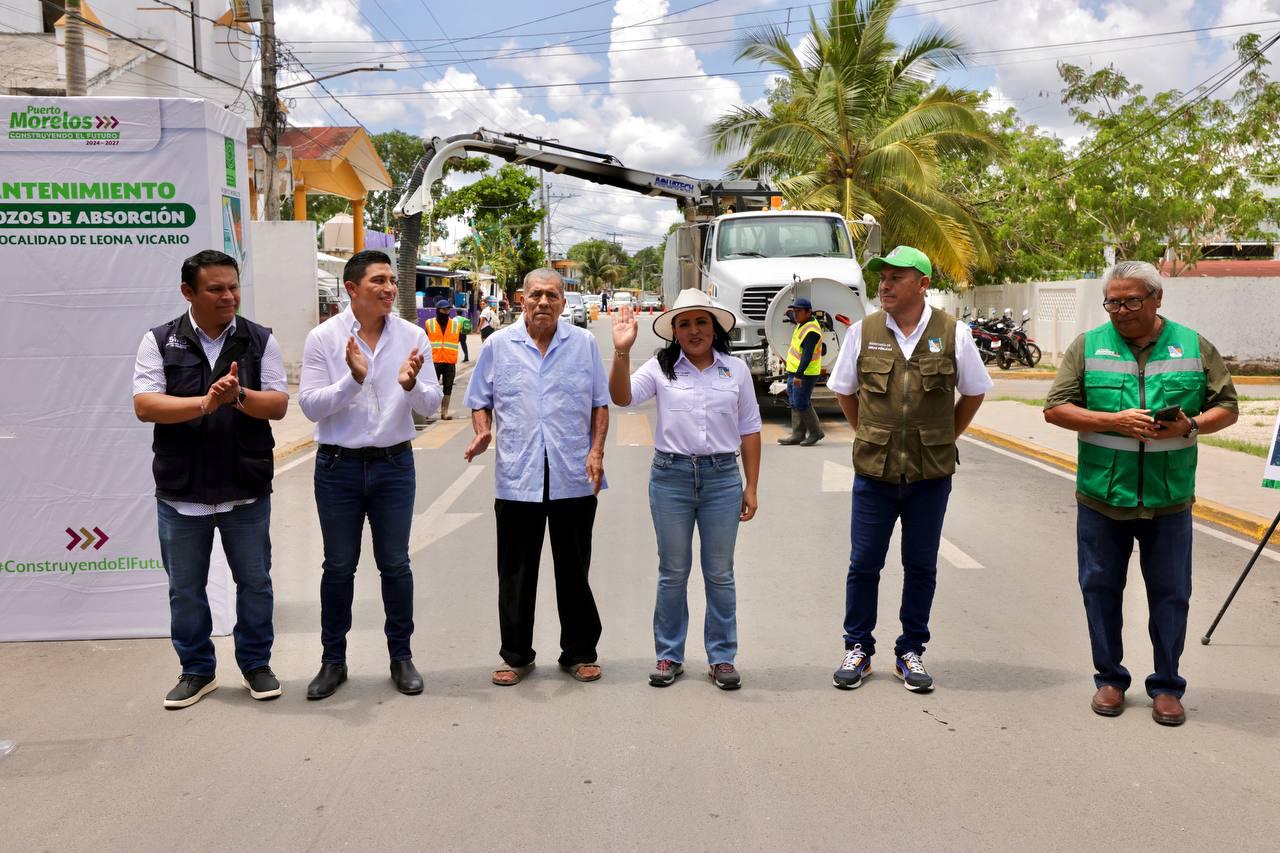 Leona Vicario, Puerto Morelos, 9 de julio de 2025.– La presidenta municipal Blanca Merari Tziu Muñoz puso hoy en marcha diversas obras en esta Delegación, que incluyen trabajos de pavimentación y la construcción y limpieza de pozos de absorción.