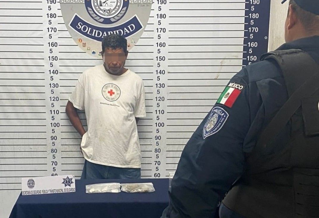 PLAYA DEL CARMEN, Quintana Roo, 14 de julio. – Policías de la Secretaría de Seguridad Pública y Tránsito Municipal de Solidaridad aseguraron a un sujeto en posesión de posible marihuana y cocaína en el Puesto de Inspección Preventiva ubicado en el filtro de la carretera federal, kilómetro 307, Playa del Carmen – Cancún.