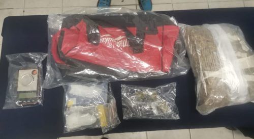 Los policías municipales lo observaron cuando caminaba por la vía pública manipulando lo que parecía ser marihuana, por lo que le marcaron el alto, y al realizarle una revisión de seguridad encontraron en su maleta, 1 bolsa y 3 bolsitas con vegetal verde y seco similar a la marihuana, 3 bolsitas con posible cristal y una báscula gramera.