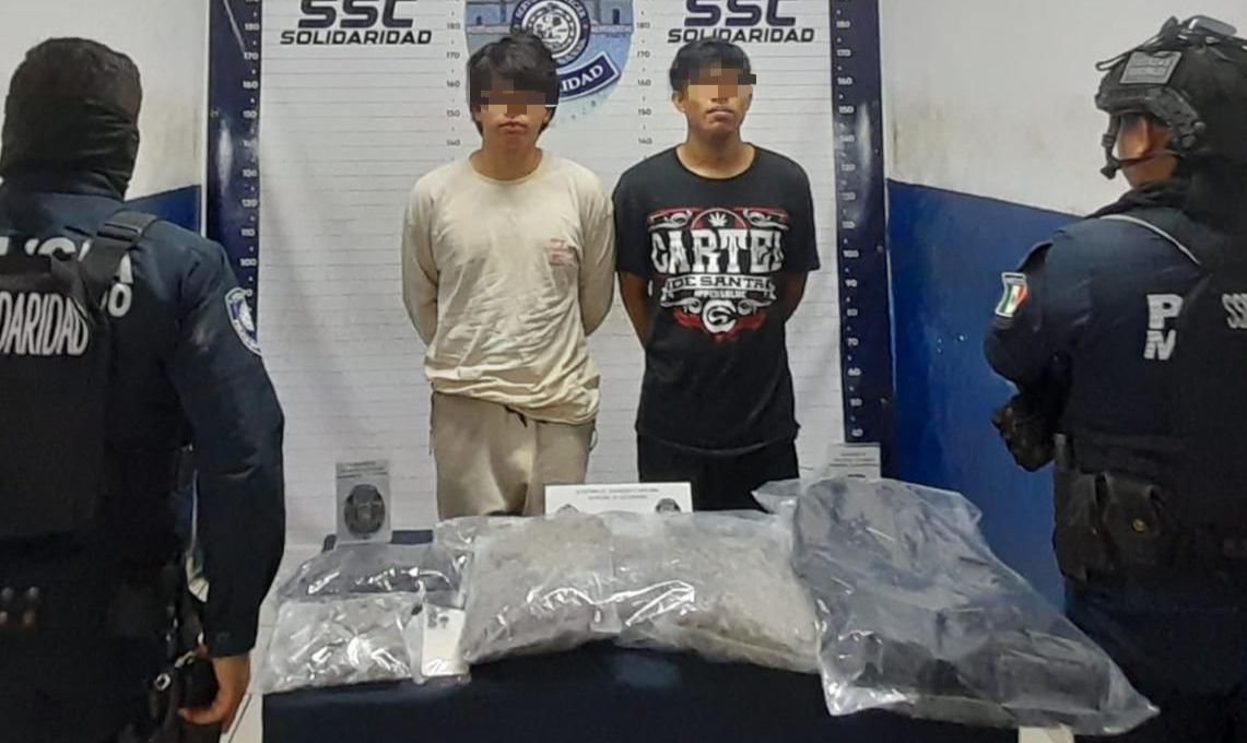 Arrestan a dos jóvenes, uno cancunense y otro colombiano con sendos paquetes de “yerba” en Playa del Carmen