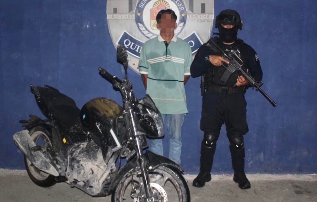 Arrestan a malandro con una motocicleta robada en Cancún.