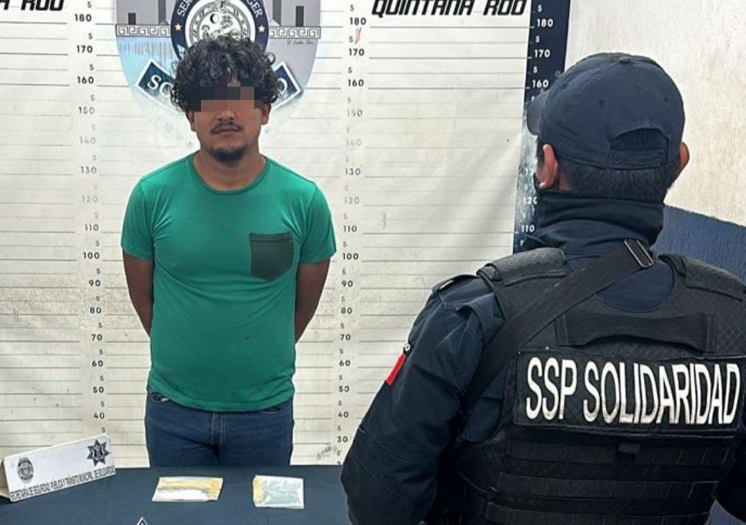 PLAYA DEL CARMEN, Quintana Roo, 29 noviembre. – Como resultado de las acciones contra el narcomenudeo, la Policía Municipal de Solidaridad aseguró a un sujeto señalado de ofrecer posibles, así como 30 envoltorios con posible metanfetamina.