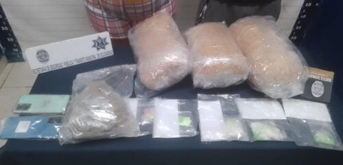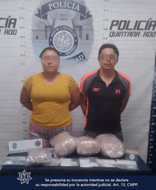PLAYA DEL CARMEN, Quintana Roo, 21 mayo. – En el operativo de vigilancia y prevención de delitos en la colonia Ejido, la Policía Municipal de Solidaridad aseguró a dos personas en posesión de 3 paquetes y más de 100 envoltorios con posibles drogas como marihuana, piedra, cocaína, pastillas y LSD.