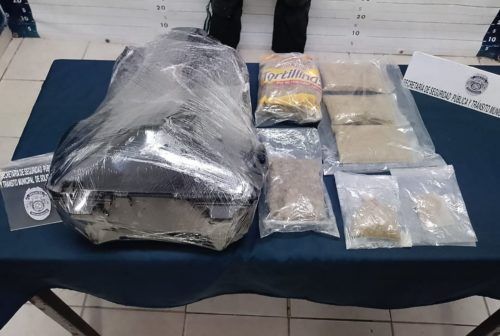 En otro punto de la ciudad, elementos de la Policía Turística y la MARINA realizaban un recorrido pedestre sobre la Zona Federal Marítima entre la avenida Juárez y la calle primera, donde aseguraron a Jaime “N” de 24 años, originario de la Ciudad de México, tenía en su posesión seis envoltorios con un vegetal similar a la marihuana y una bolsa con semillas secas, él fue observado sacando un envoltorio con la posible droga de una mochila.