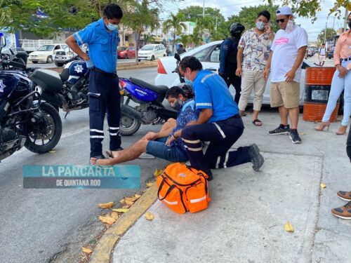 Minutos más tarde arribaron paramédicos de la empresa privada costamed, quienes valoraron a los lesionados que se trasladaban abordo de su motoneta marca Italika color azul con permiso de circulación.