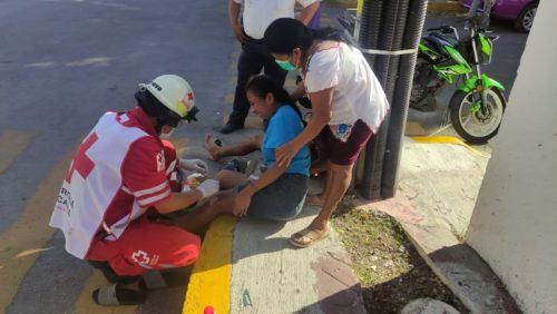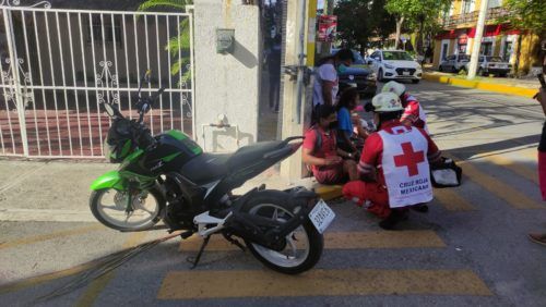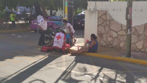 PLAYA DEL CARMEN, Quintana Roo, 07 de agosto. – Con lesiones en el cuerpo terminó la conductora de una motocicleta que fue impactada por un taxista que le realizó un corte de circulación en la colonia Centro.