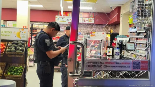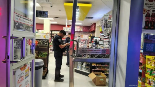 CANCÚN, 11 de abril de 2026.-La madrugada de este sábado se registró un asalto con violencia en una tienda de conveniencia ubicada en el cruce de las avenidas Nichupté y México, en la Supermanzana 509, donde presuntos delincuentes lograron ingresar tras causar daños en el acceso principal.