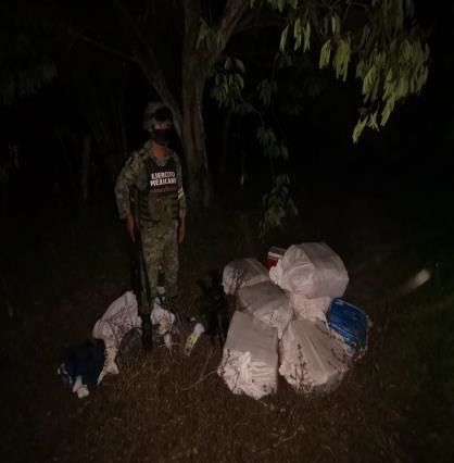CHETUMAL, Quintana Roo, 29 de abril.- Un total de 241 paquetes de cocaína, 7 armas y dos mil cartuchos útiles de diferentes calibres, fueron asegurados por elementos del Ejército Mexicano en la comunidad de Juan Sarabia.