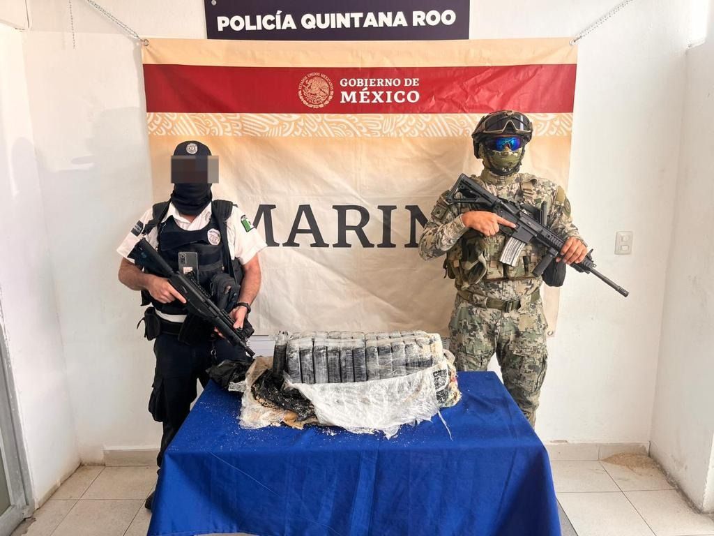 CANCÚN, Quintana Roo, 28 de enero. – La Secretaría de Marina a través de la Armada de México por conducto de la Novena Región Naval, informa que ayer, personal naval en coadyuvancia con la Policía Turística de Cancún localizaron y aseguraron 25 paquetes, que en su interior contenían polvo blanco con las características similares a la cocaína en Cancún, Quintana Roo.