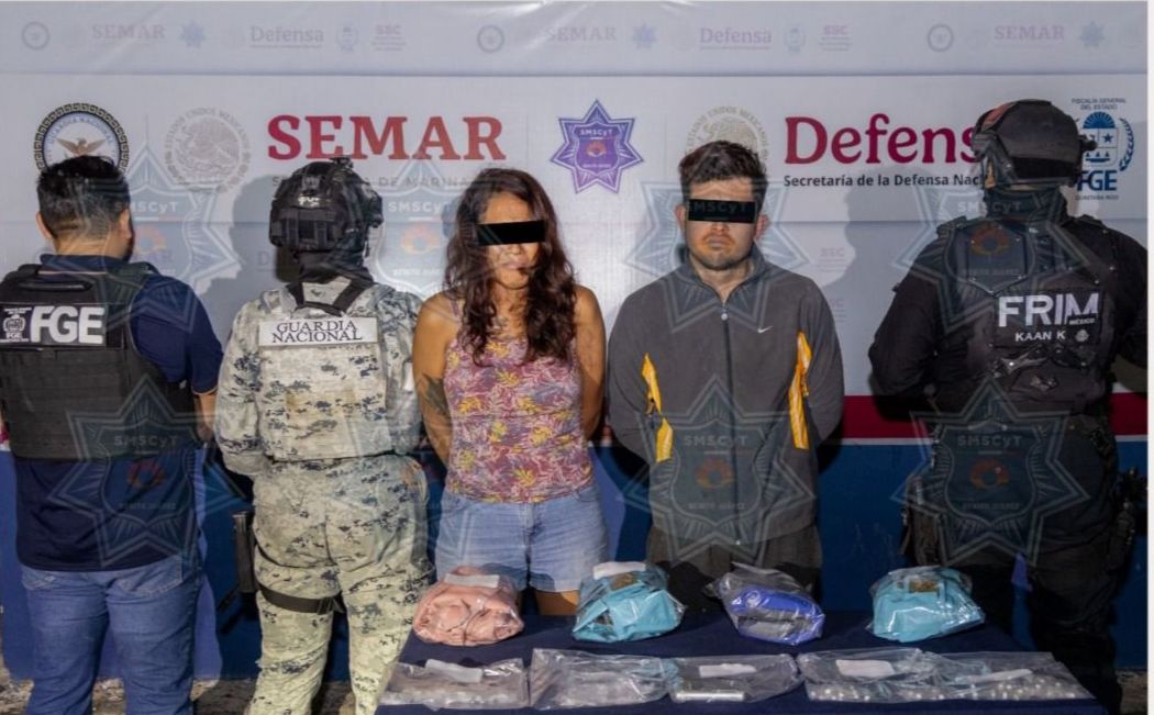 CANCÚN, Quintana Roo, 4 de diciembre de 2025.— En una acción conjunta entre la Fiscalía General del Estado (FGE), autoridades federales y la Secretaría Municipal de Seguridad Ciudadana y Tránsito (SMSCyT), fueron detenidos una mujer y un hombre presuntamente implicados en delitos contra la salud en su modalidad de narcomenudeo.