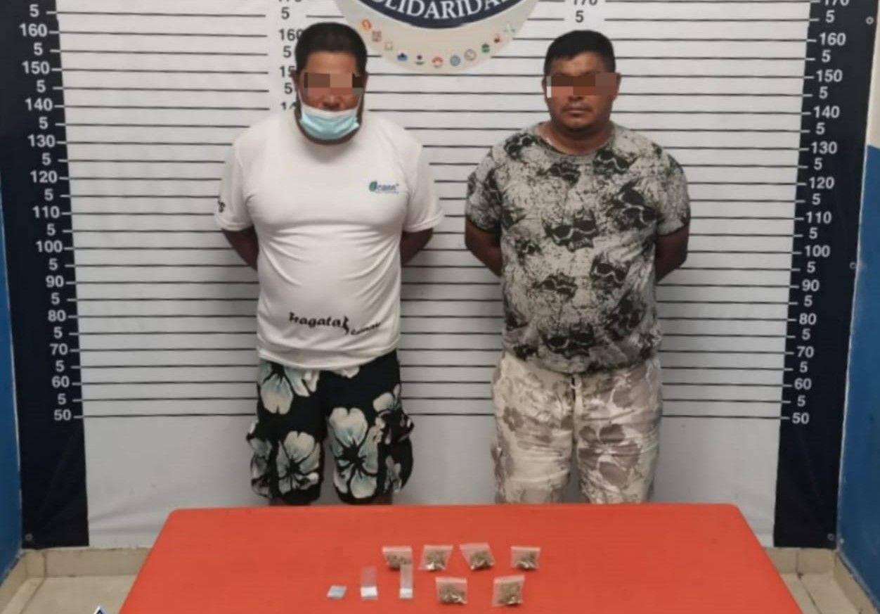 PLAYA DEL CARMEN, Quintana Roo, 04 de marzo. – Policías de la Secretaría de Seguridad Pública y Tránsito Municipal de Solidaridad aseguraron a dos personas en posesión de posible cocaína y marihuana en las inmediaciones de la colonia Centro.