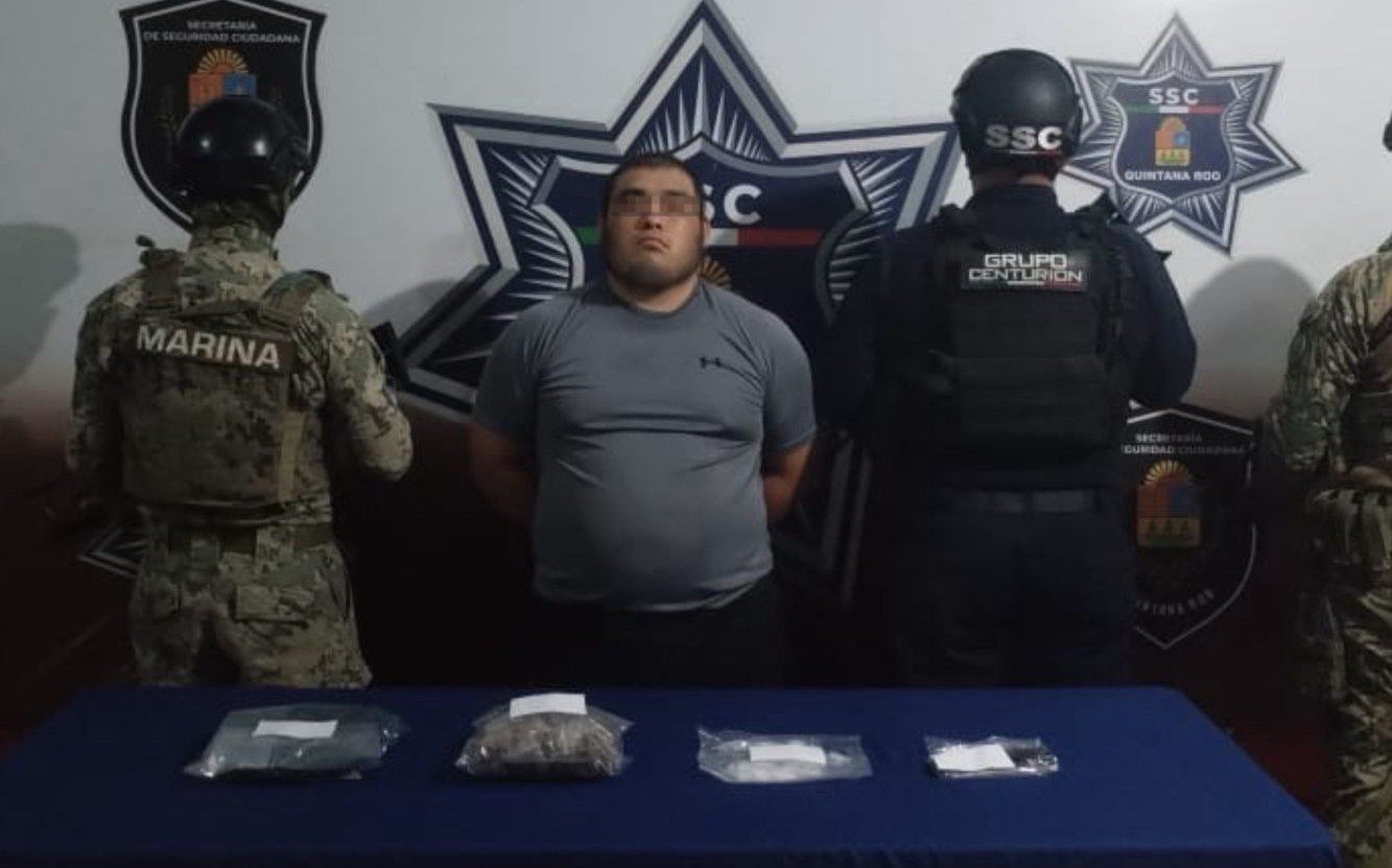 Aseguran a sujeto por presunta posesión de drogas en la Supermanzana 107