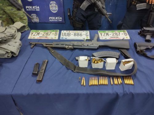 NICOLÁS BRAVO, Quintana Roo, 26 de septiembre.- En un operativo coordinado entre la Secretaría de la Defensa Nacional y la Policía Quintana Roo en la zona sur del estado, se logró el aseguramiento de armas, chalecos balísticos y cartuchos útiles.