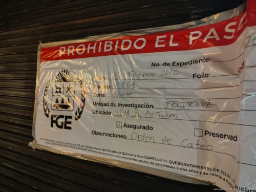 CANCÚN, Quintana Roo, 15 de febrero de 2026.- La Fiscalía General del Estado aseguró la madrugada de este domingo el bar “Perla Negra”, ubicado sobre la avenida Tulum, en el centro de Cancún, como parte de una investigación por presunta trata de personas.