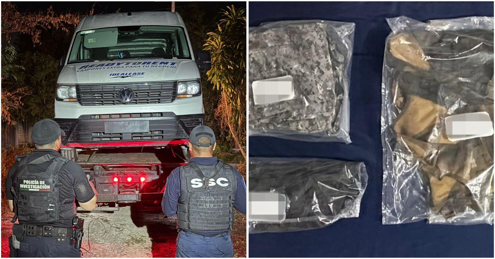 Tras consultar con el Complejo de Seguridad C5, se confirmó que la camioneta tenía reporte de robo en 2024. Durante la inspección, en la parte trasera del vehículo se encontraron los siguientes objetos: