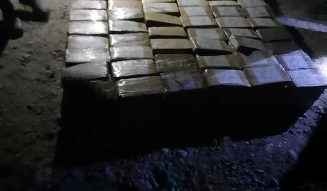 Se aseguraron mil 185 paquetes de aproximadamente un kilo cada uno de presunta cocaína; un arma larga; 72 cartuchos de diversos calibres y dos vehículos.
