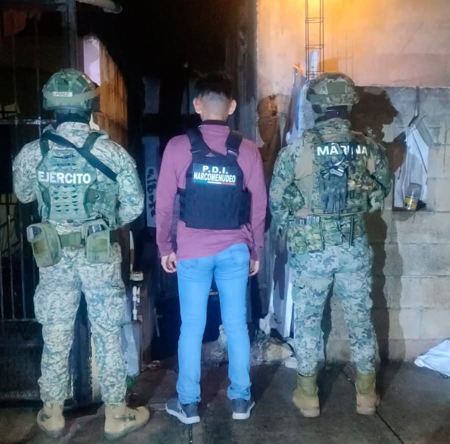 En la Supermanzana 249, en un domicilio ubicado en el fraccionamiento Cielo Nuevo, sobre la calle Isla Lesbos, los agentes localizaron sustancias similares a la cocaína, cristal y marihuana, así como un arma de fuego corta y una báscula gramera. En el lugar, lograron la captura de una persona identificada como Eduardo Remigio “N”, a quien se le relaciona con un grupo criminal generador de violencia en esta demarcación.