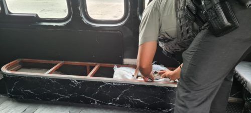 Al aproximarse al vehículo tipo panel para el transporte público, los guardias nacionales se percataron que en los asientos traseros había unas bolsas con relleno de cartón que ocultaban los cartuchos útiles.