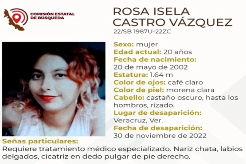 Los hechos ocurrieron en el puerto de Veracruz, Golfo de México, donde el pasado 30 de noviembre Rosa Isela Castro Vázquez, una joven de 20 años, fue reportada como desaparecida.