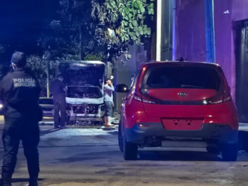 PLAYA DEL CARMEN, Quintana Roo, 7 de enero de 2026.—Dos vehículos pertenecientes a una empresa dedicada a la venta de hielo fueron incendiados de manera intencional durante la madrugada en la colonia Ejido, lo que generó una fuerte movilización de cuerpos de emergencia y autoridades de seguridad.