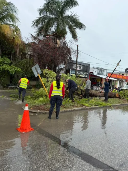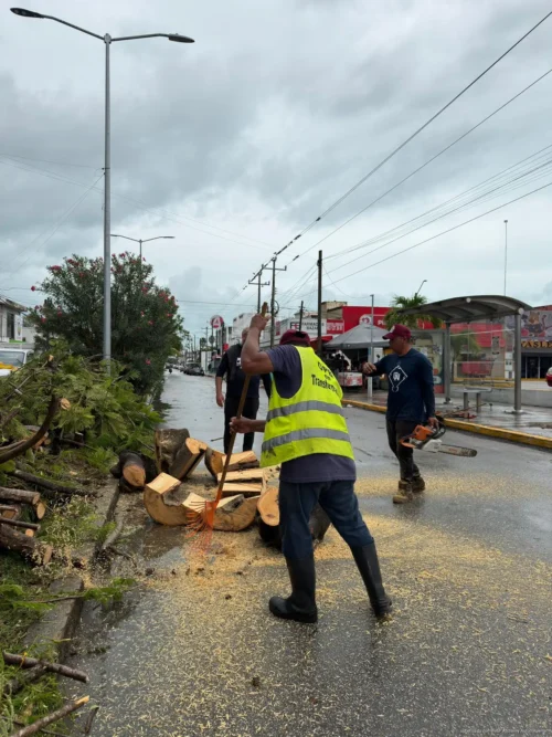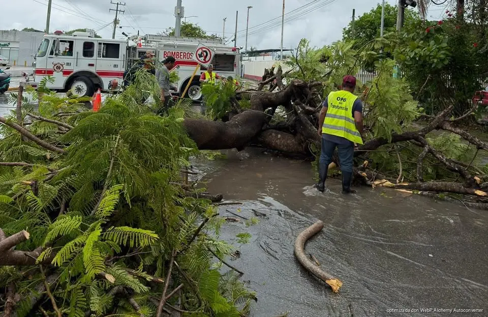 Chetumal, 2 de abril. -El Ayuntamiento de Othón P. Blanco atendió de manera oportuna el reporte de un árbol caído que obstruía la circulación en la intersección de la avenida San Salvador con 4 de Marzo, derivado de las lluvias registradas en las últimas horas. Se trató de un árbol de la especie flamboyán, de aproximadamente 10 metros de altura, que cedió debido a las condiciones climatológicas.