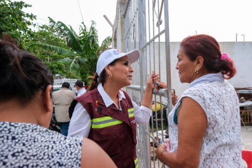 La titular del Ejecutivo, junto con de autoridades de Protección Civil y de Obras Públicas, así como de la presidenta municipal Yensunni Martínez Hernández, dialogó con vecinos de la colonia.