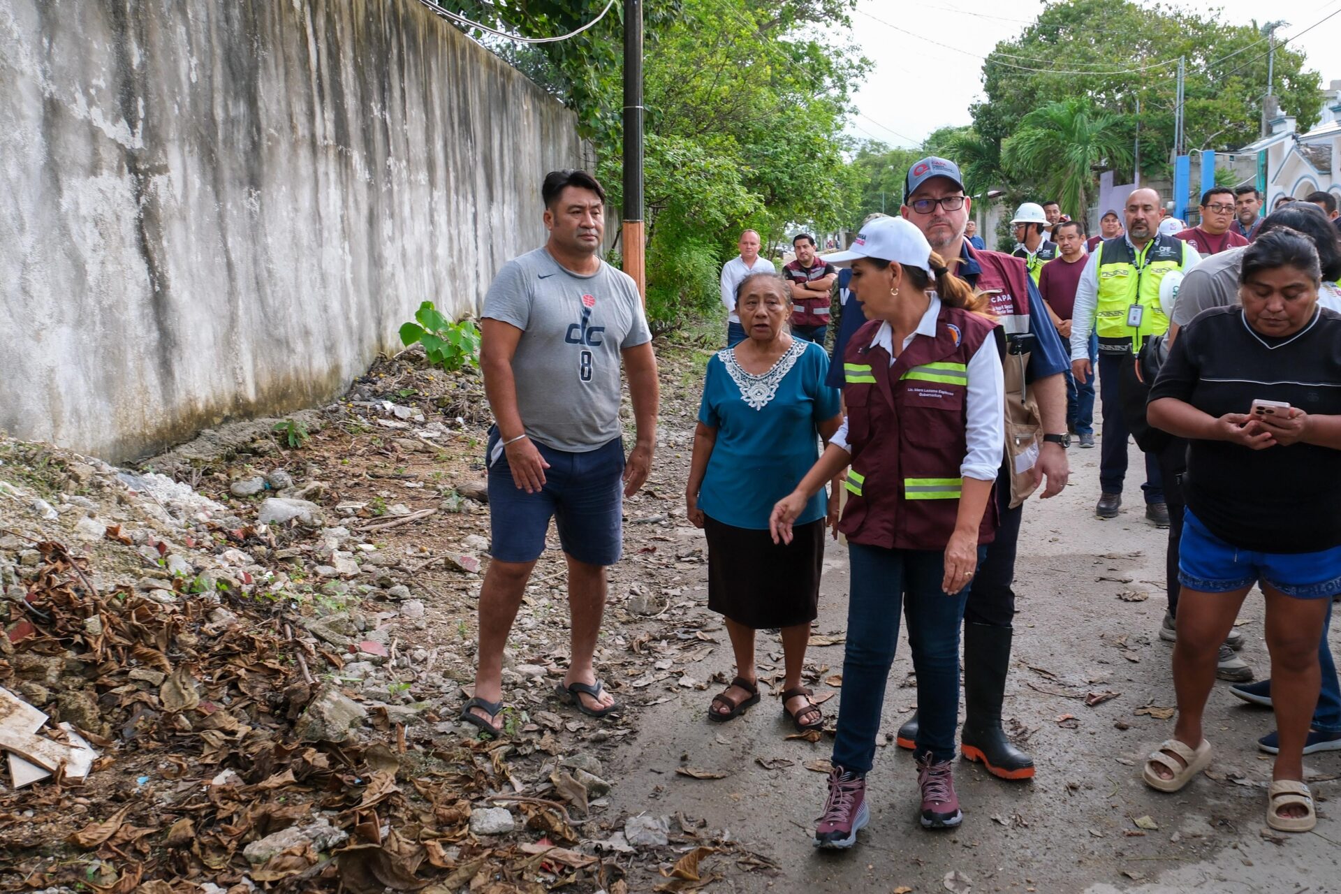 CHETUMAL, Quintana Roo, 29 de junio de 2025.- Para atender, resolver y escuchar a las personas que tuvieron afectaciones por las fuertes lluvias de días pasados, la gobernadora Mara Lezama Espinosa recorrió las calles 2 Aguadas y 5 de Febrero, de la colonia Proterritorio de esta capital.