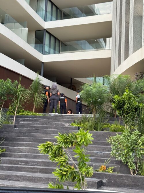 PLAYA DEL CARMEN, Quintana Roo, 15 de octubre de 2025.— Paramédicos de Protección Civil y elementos de la Secretaría de Seguridad Ciudadana Municipal acudieron a la colonia Brisas, donde se reportó la presencia de una mujer con aparentes lesiones a la entrada de un condominio.