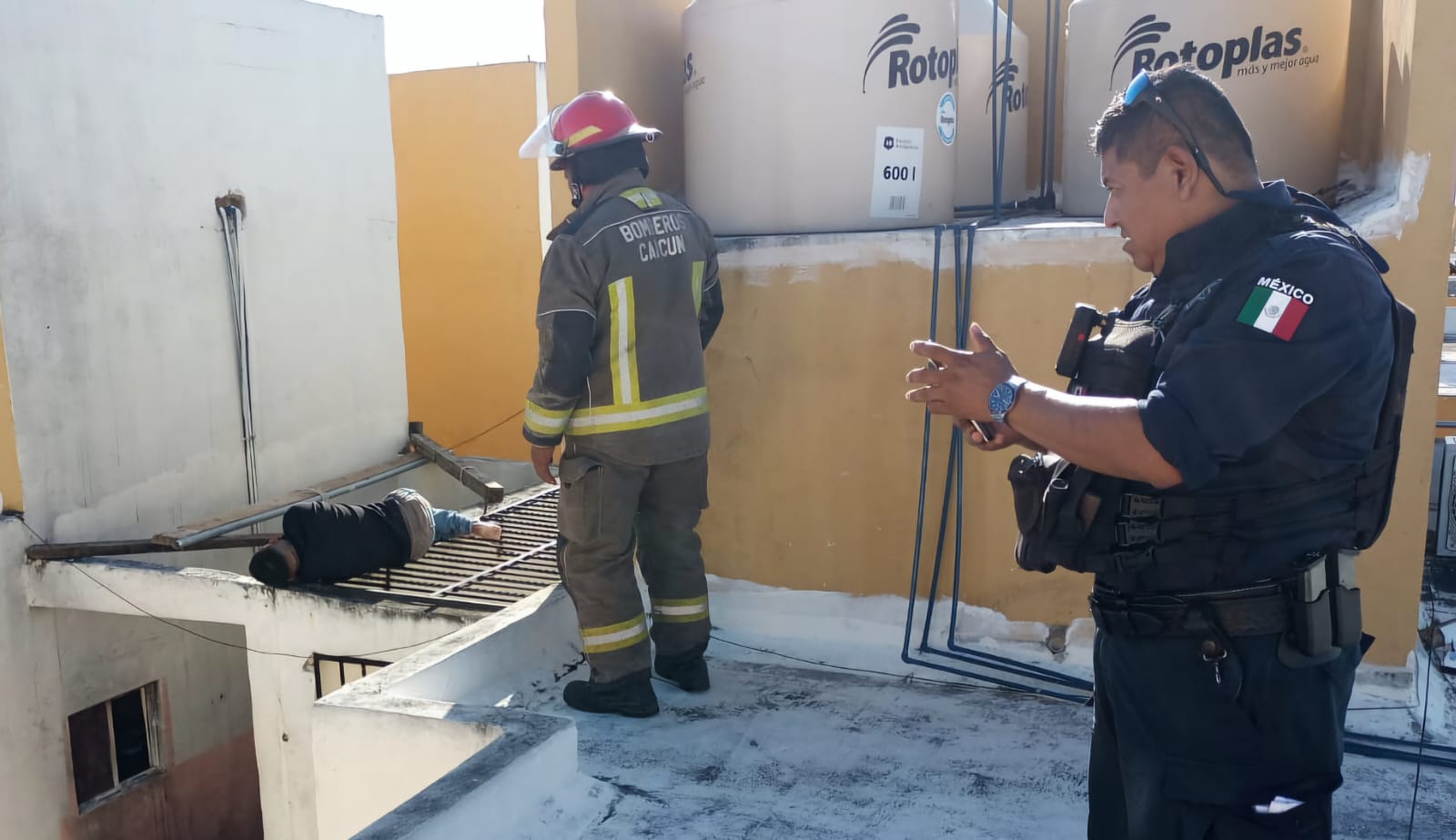 En otro hecho, bomberos acudieron al fraccionamiento Cielo Nuevo, en la supermanzana 249, donde vecinos reportaron a una persona tirada en la azotea de un edificio de tres niveles. Elementos de la Secretaría de Seguridad Ciudadana solicitaron el apoyo para verificar la situación, descubriendo que se trataba de un hombre que dormía en completo estado de ebriedad, sin que se supiera cómo había llegado hasta ese punto.