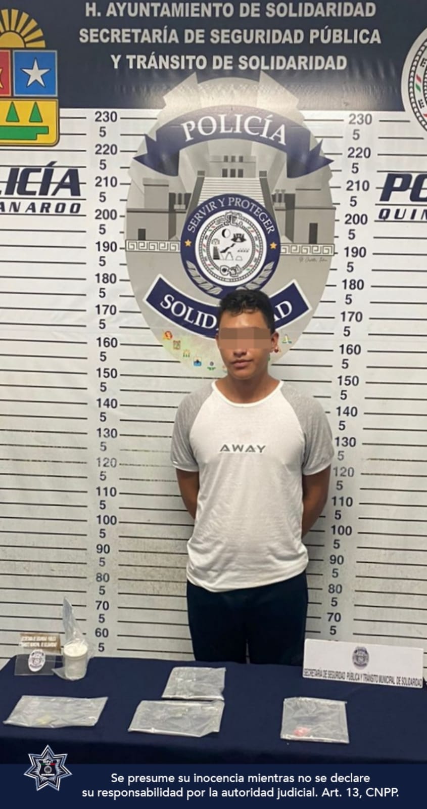 PLAYA DEL CARMEN, Quintana Roo, 18 de septiembre. – Durante la implementación del operativo “Cierre de bares”, elementos de la Secretaría de Seguridad Pública y Tránsito Municipal de Solidaridad, aseguraron a un sujeto en posesión de 18 bolsitas con posible droga en la Quinta Avenida con avenida Constituyentes.