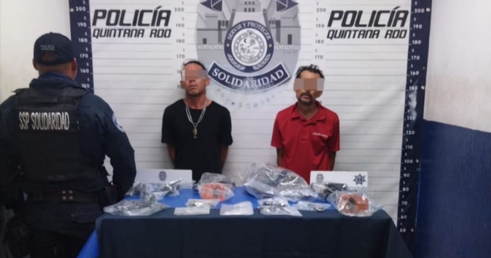PLAYA DEL CARMEN, Quintana Roo, 04 de marzo. – En una rápida acción, policías de la Secretaría de Seguridad Pública y Tránsito Municipal de Solidaridad aseguraron a dos sujetos en posesión de posibles narcóticos, una réplica de arma de fuego y artículos como televisores y relojes, durante un operativo de vigilancia.
