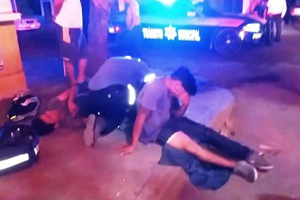 PLAYA DEL CARMEN, Quintana Roo, 15 de Julio.- Par de jóvenes resultaron con fracturas de rótula izquierda tras ser colisionada la moto en la que circulaban sobre la calle 20 de la colonia ejidal, la misma versión de los lesionados indicó que no respetaron su alto invadiendo el carril de un auto fantasma que tras el accidente huyó del lugar, ambos jóvenes fueron trasladados al hospital general por socorristas de la empresa privada Costamed.