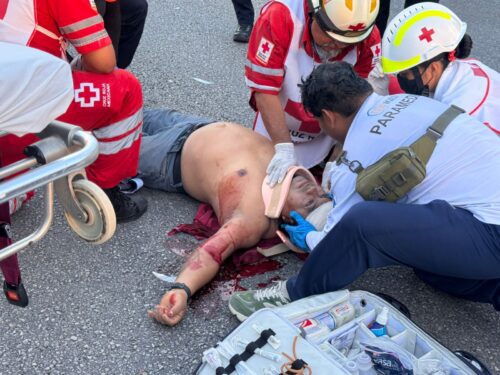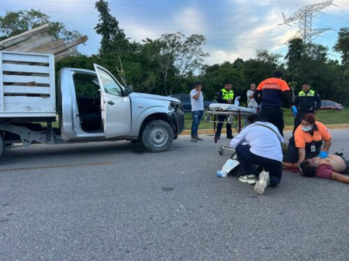 PLAYA DEL CARMEN, Quintana Roo, 26 de septiembre.- Trasladan al hospital con una grave lesión en la cabeza a un motociclista que fue impactado en la carretera federal 307, por una camioneta, el hombre fue llevado en código rojo ya que quedó inconsciente por varios minutos.