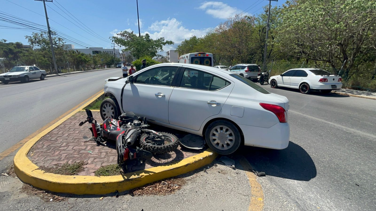 Playa del Carmen, Q. Roo.— Un aparatoso accidente se registró la mañana de este jueves sobre la avenida Constituyentes, a la altura de la colonia Ejido, donde un automóvil terminó montado sobre el camellón central tras arrollar una motocicleta. El percance dejó una persona lesionada y daños materiales considerables.