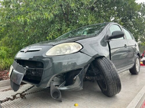 El accidente ocurrió alrededor de las 10:00 de la mañana, cuando el conductor de un Fiat Palio color negro, que circulaba en dirección al sur, perdió el control del volante debido al pavimento mojado, lo que lo llevó a impactarse contra el camellón central.