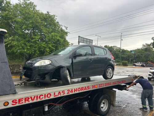 Playa del Carmen, Q. Roo., a 24 de julio de 2025.– Dos personas resultaron con lesiones leves luego de que el vehículo en el que viajaban se estrellara contra el camellón central del bulevar Playa del Carmen, a la altura de la avenida Arco Vial.