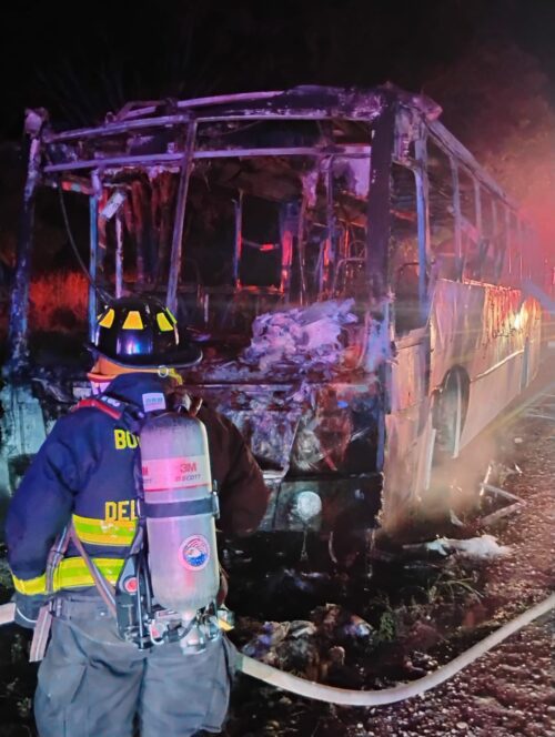 Playa del Carmen, Q. Roo.- Un autobús fue consumido por el fuego la noche de este martes en la colonia Bellavista, sin que se reportaran personas lesionadas. Las autoridades ya investigan si el siniestro fue provocado, ya que la unidad llevaba varios días estacionada y no se encontraba en funcionamiento.
