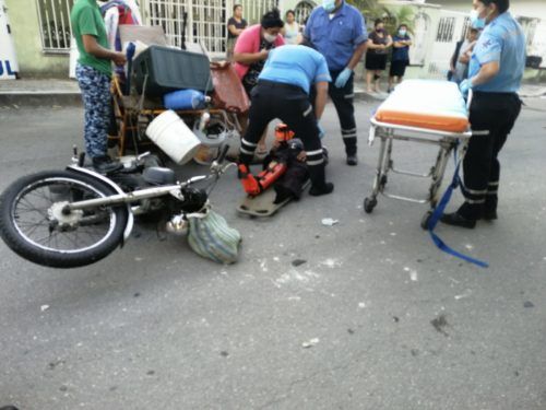 El conductor de la motocicleta que circulaba con preferencia de paso sufrió fractura de pierna al caerle su motocicleta encima debido al fuerte impacto.