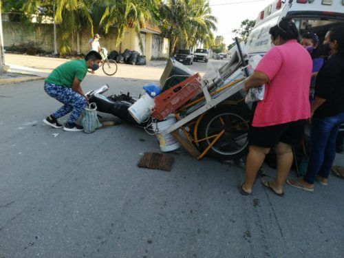 PLAYA DEL CARMEN, Quintana Roo, 27 de noviembre.- Conductor de camioneta particular no respeta su alto obligatorio y embiste a motociclista que circulaba con preferencia de paso en la Colonia ejido.