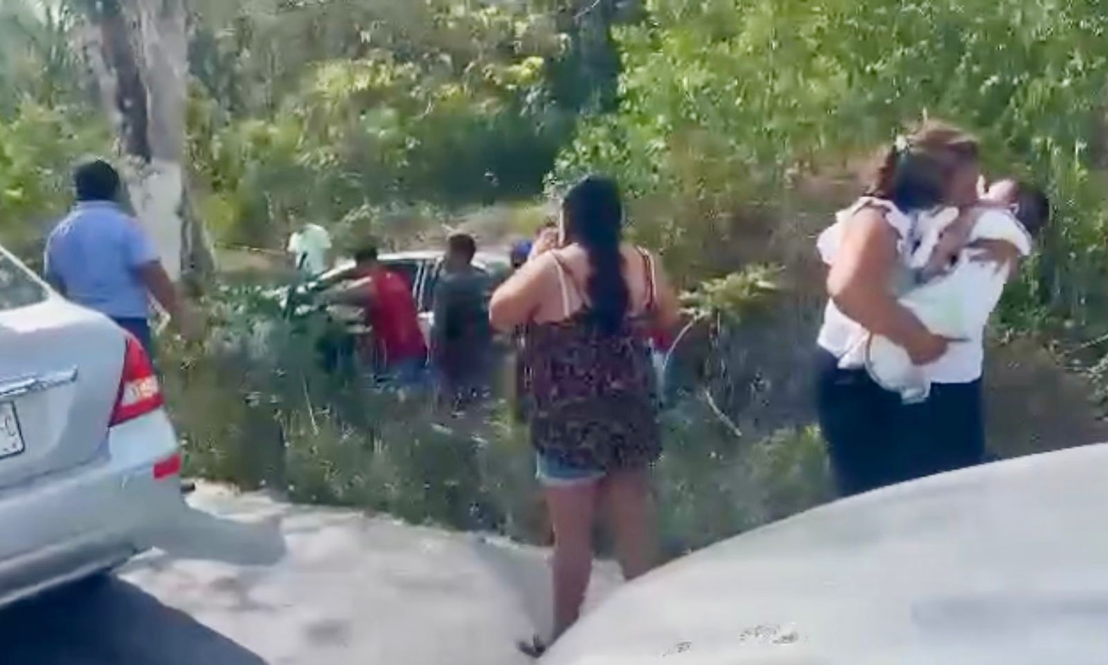Cancún, Q. Roo, 26 de mayo de 2025. Un accidente vehicular se registró este lunes en la carretera Cancún–Leona Vicario, luego de que un conductor perdiera el control del vehículo tras intentar esquivar un tráiler que se le atravesó repentinamente en el camino.