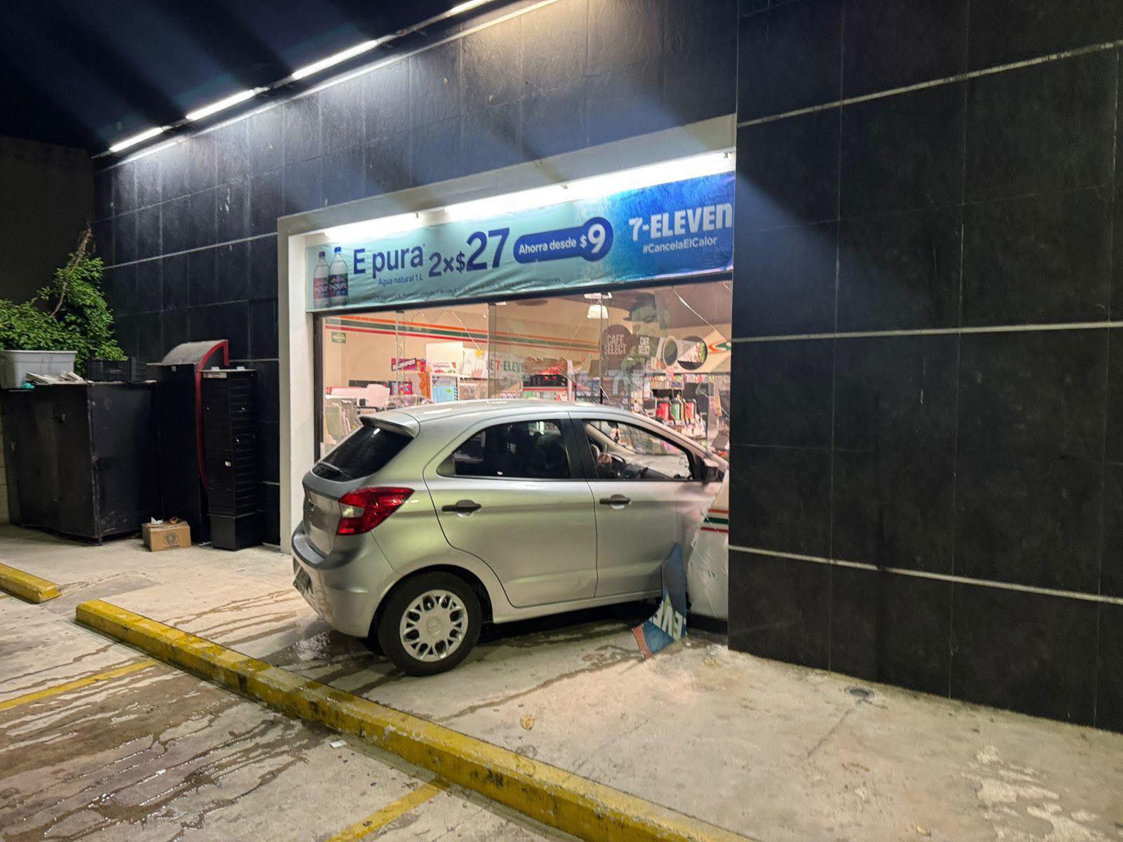 El automóvil rompió el cristal frontal, derribó anaqueles con productos y terminó a escasos metros del área de cajas. A pesar del impacto, no se reportaron personas lesionadas, aunque los daños materiales superan los 200 mil pesos, según estimaciones preliminares.