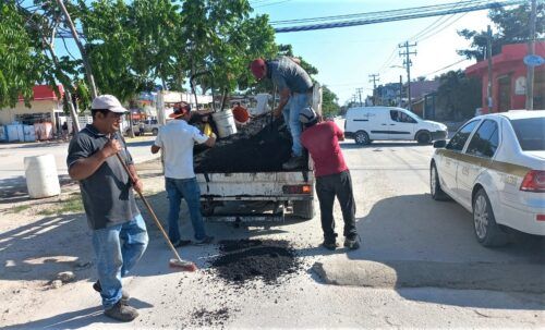 PUERTO MORELOS, Quintana Roo, 08 de junio. -El gobierno de Puerto Morelos continúa con los trabajos de reparación de calles y avenidas, tanto en la cabecera municipal como en la delegación de Leona Vicario, luego de que el pasado 29 de mayo la Secretaría municipal de Obras y Servicios Públicos emprendió el programa de bacheo en frío.