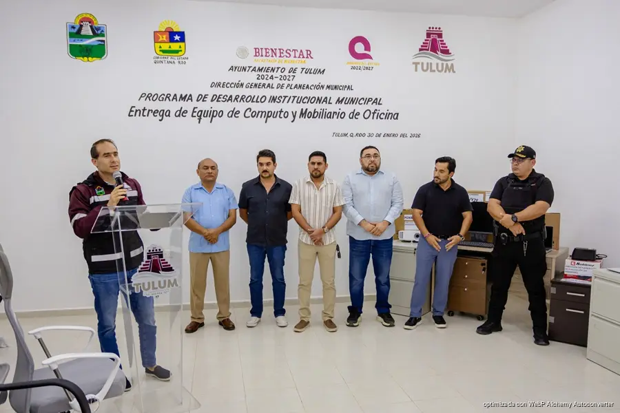 TULUM, Quintana Roo a 30 de enero de 2026.- Para elevar la capacidad de atención en diversas áreas del ayuntamiento municipal y ofrecer el servicio que las y los tulumnenses se merecen, este día se llevó a cabo la entrega de equipo de cómputo y mobiliario de oficina.