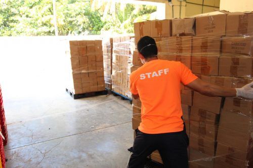 La entrega se realizó desde el hotel Bahia Principe Luxury Akumal, donde colaboradores voluntarios trabajaron en coordinación para traspasar las 2,000 despensas, contenidas en más de 10 tarimas, acomodándolas en los vehículos que el sindicato dispuso para recoger la mercancía.