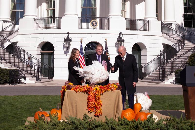 El presidente de Estados Unidos, Joe Biden, cumplió con la tradición e indultó a dos pavos que ya no se convertirán en la cena del Día de Acción de Gracias, durante un acto en la Casa Blanca, donde bromeó sobre los modestos resultados de los republicanos en las elecciones legislativas.