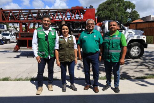 En este arranque de los trabajos de mantenimiento de pozos pluviales la Presidenta Municipal también estuvo acompañada por Leonel Salazar Trejo, Manuel Alejandro Nava García, Alexander May Chi y Rolando Melo Novelo, secretarios de Servicios Públicos, Seguridad Ciudadana, Bienestar y Desarrollo Urbano y Ordenamiento Territorial, respectivamente.