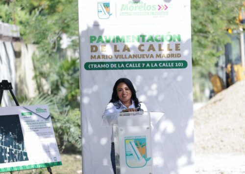 Puerto Morelos, Quintana Roo, 14 de julio de 2025.— Con la firme convicción de transformar realidades y cumplir la palabra empeñada, la presidenta municipal Blanca Merari Tziu Muñoz dio hoy el banderazo de inicio a la pavimentación de la calle Mario Villanueva Madrid, en su segunda etapa que consiste en el tramo entre calles 7 y 10, una obra prioritaria para cientos de familias de la zona urbana de Puerto Morelos.