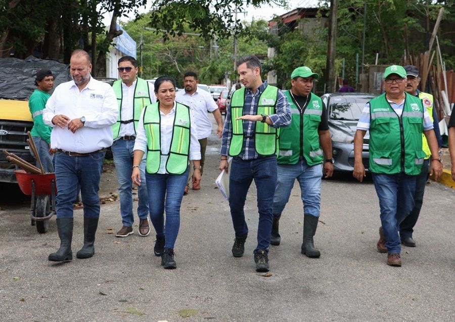 El recorrido incluyó la calle Almendros, entre Pich y Maculix, donde constató que fue desaguada con el apoyo de una bomba de achique, al igual que las viviendas ubicadas entre la parte posterior de la Secretaría de Seguridad Ciudadana y la Dirección de Servicios Públicos, donde el agua que escurre de la carretera federal se acumula y, cuando satura el drenaje pluvial, invade las casas.