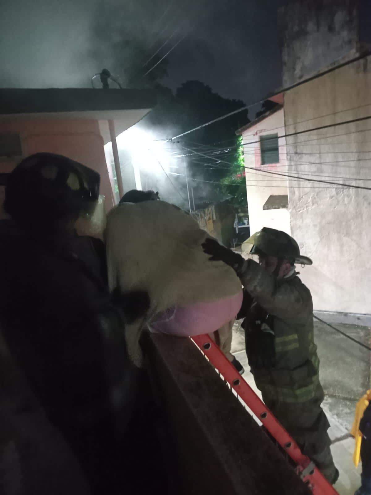 Más tarde, a las 2:00 de la madrugada, se reportó un incendio en una casa ubicada en la calle Guadalupe Rojas de la supermanzana 26. Al llegar al lugar, los bomberos encontraron a una mujer de la tercera edad atrapada en el balcón. Gracias a su rápida intervención, los bomberos la rescataron y los paramédicos de la Cruz Roja le brindaron los primeros auxilios. También se valoró a un hombre de nacionalidad extranjera que se encontraba dentro de la vivienda.